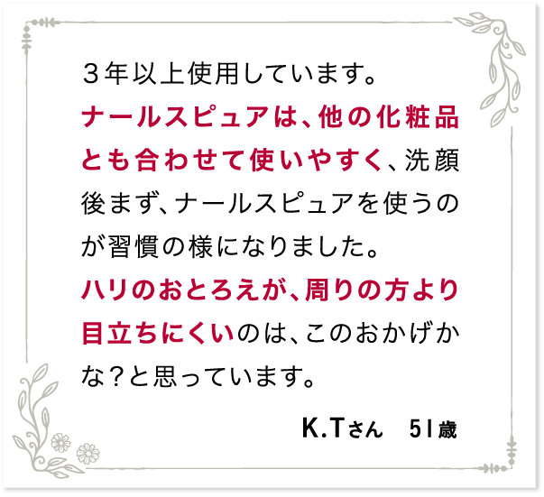 お客様の声などをもっと見てみたい方、ナールスピュアのご購入を検討される方は、さらに詳しい公式サイトにお進みください。
